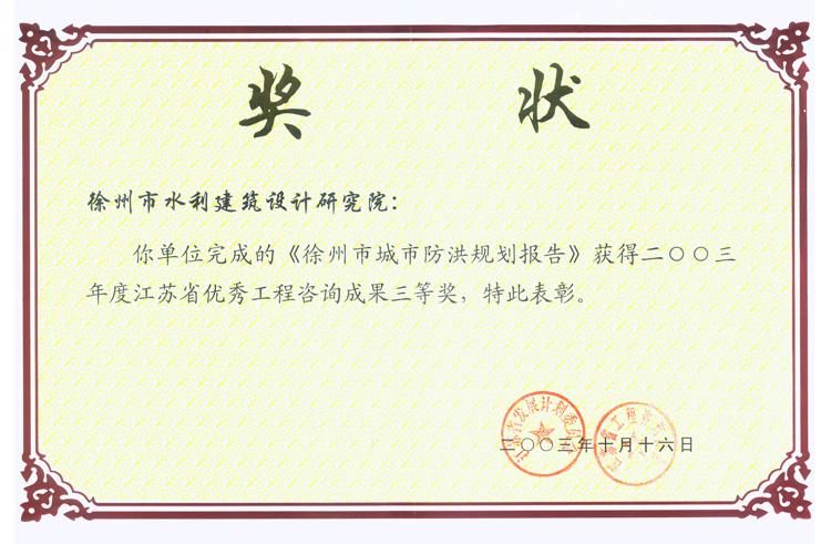 《市城市防洪規劃報告》咨詢(xún)三等獎(2003)